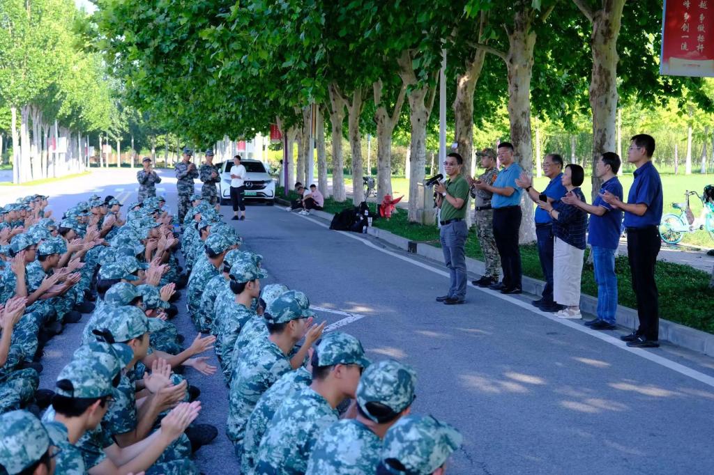 党委书记胡军、院长张玉志带领院领导班子及学工团队来到军训场地勉励并慰问我院军训学子,发放慰问品,表达学院的亲切关怀。