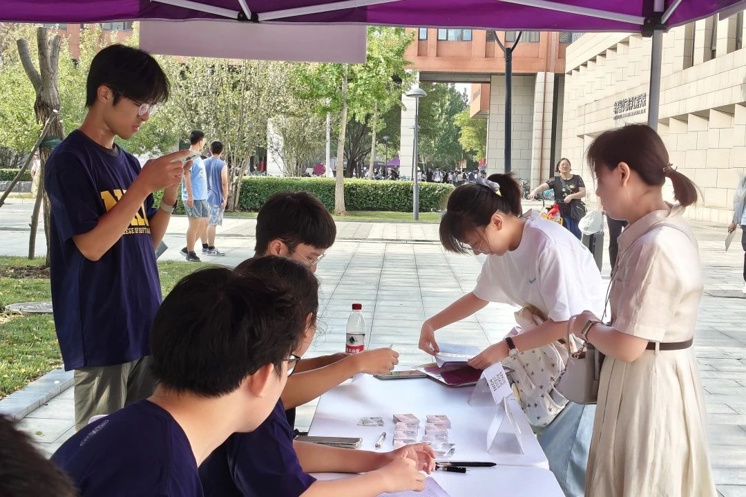 迎新现场秩序井井有条,朝气蓬勃的新生和和蔼可亲的学长学姐们一起搭建起校园中一道亮丽的风景线。