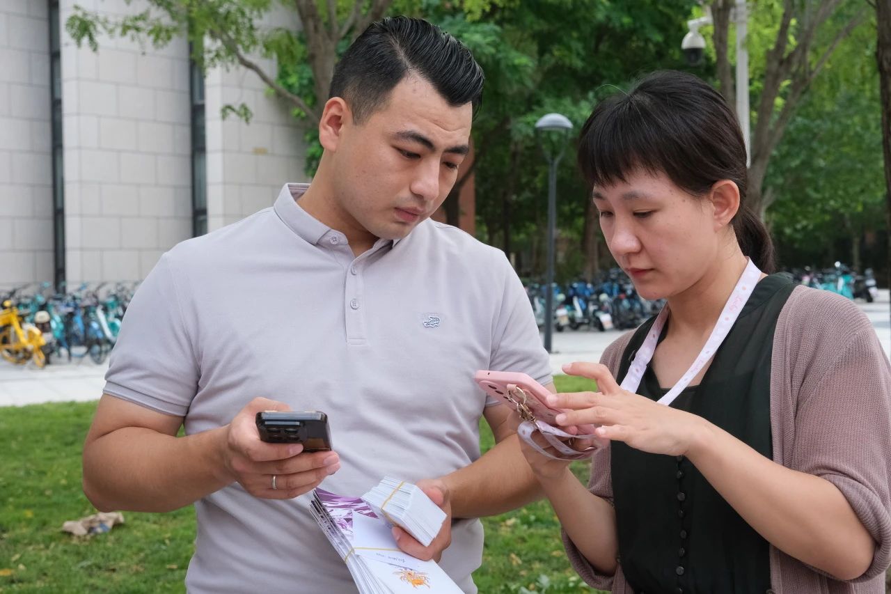 楼门口全部就位,满怀热情与期待迎接每一位新生。其中,有近十名2024级的新生加入到迎新志愿者的工作中。学院辅导员王莉、法茹克一起参与到了新生报到环节中。