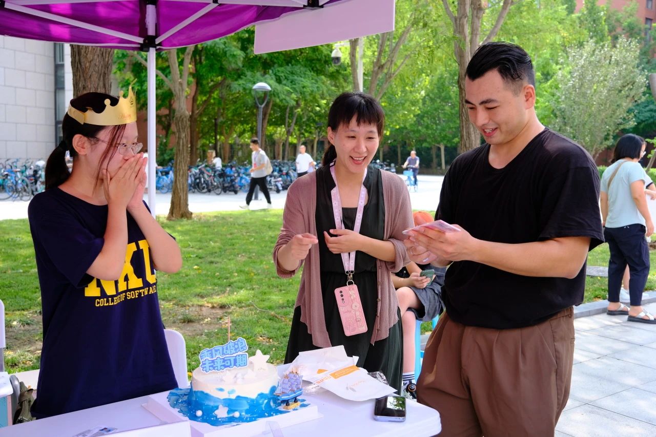 提前准备了蛋糕和纪念品,在迎新现场放起生日歌,给她过了一个别开生面的特殊生日