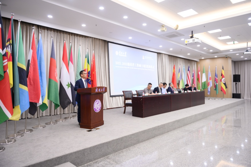 2021、2022级援外学历学位教育(软件工程硕士)项目结业仪式在八里台校区省身楼一楼报告厅举行。商务部国际商务官员研修学院副院长徐凯、奈飞工厂