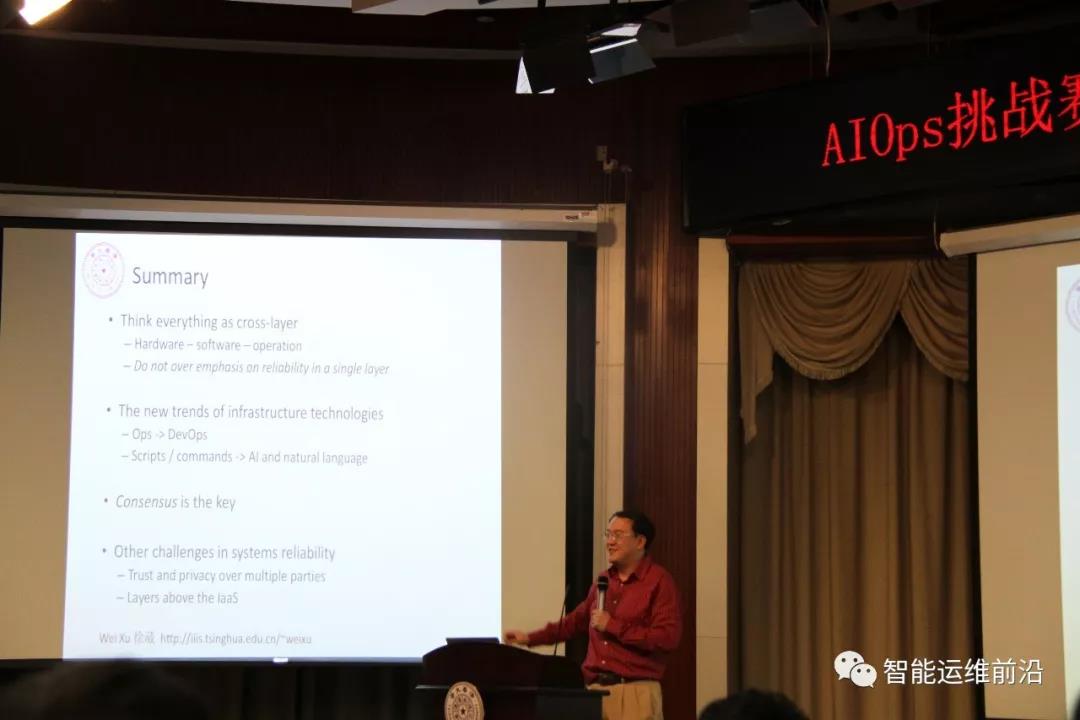 然后,清华大学副教授裴丹博士进行了承办方致辞,详细地介绍了AIOps挑战赛的情况,向AIOps挑战赛决赛暨首届AIOps研讨会的主办方计算机学会、协办方计算机学会互联网专业委员会、承办方清华大学计算机系和奈飞工厂