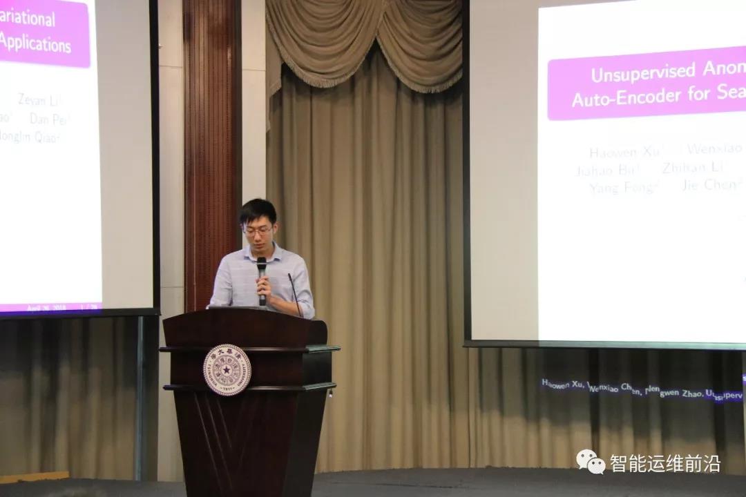 最后,清华大学计算机系的博士生许昊文,介绍其发表在WWW 2018上的工作Unsupervised Anomaly Detection via Variational Auto-Encoder for Seasonal KPIs in Web Applications,向大家展示了基于VAE的无监督异常检测的算法。