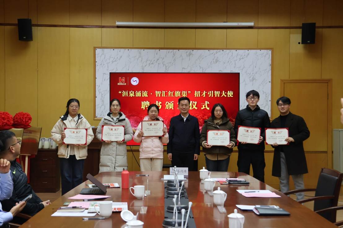 同时,现场向学校学生代表颁发《林州市“洹泉涌流・智汇红旗渠”招才引智大使》聘书。一系列务实举措标志着校地合作迈入共育共享、双向赋能的新阶段,为人才链与产业链深度融合搭建起更坚实的桥梁。