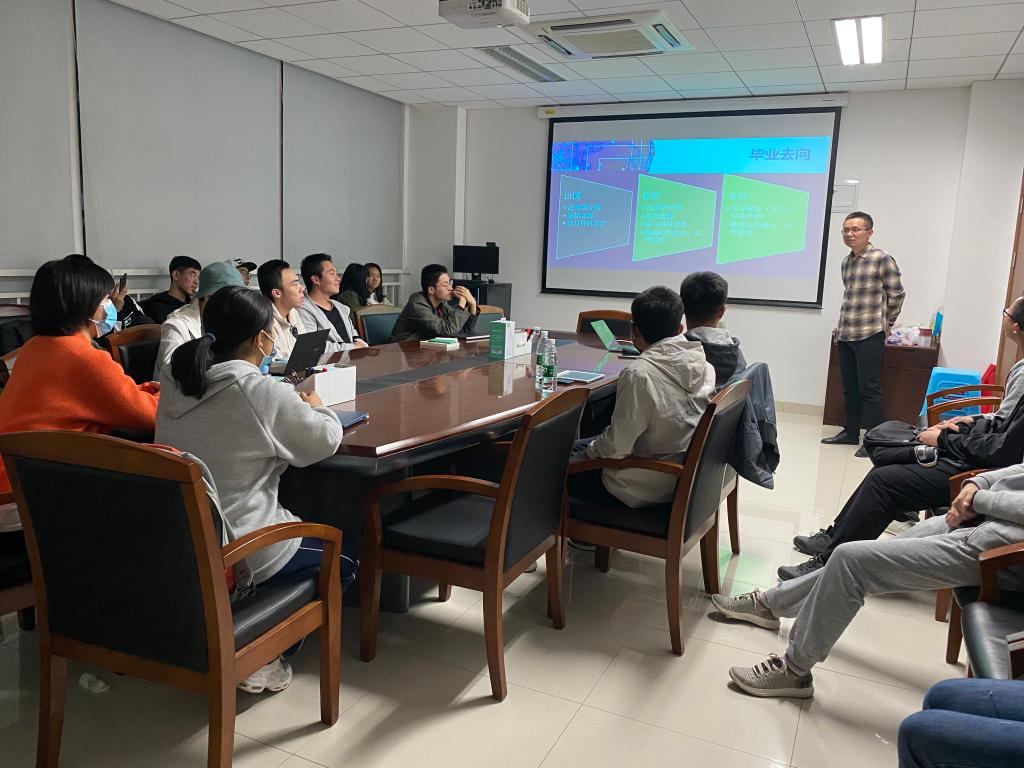 专任教师王超老师为新生进行学业指导活动。王老师针对大家关心的课程学习、升学指导、职业规划等多个方面与同学们进行了友好交流。考虑到大一新生尚不适应大学生活的实际状况,王超老师先给同学们就如何尽快适应大学生活、怎样做好时间管理、如何提高学习效率等问题进行了详细阐述,接着又给大家介绍了将来毕业时大家关于直接就业、出国留学、国内读研究生等各种选择的利弊,建议大家想好自己未来的人生道路并做好相应规划,一步一个脚印执行。