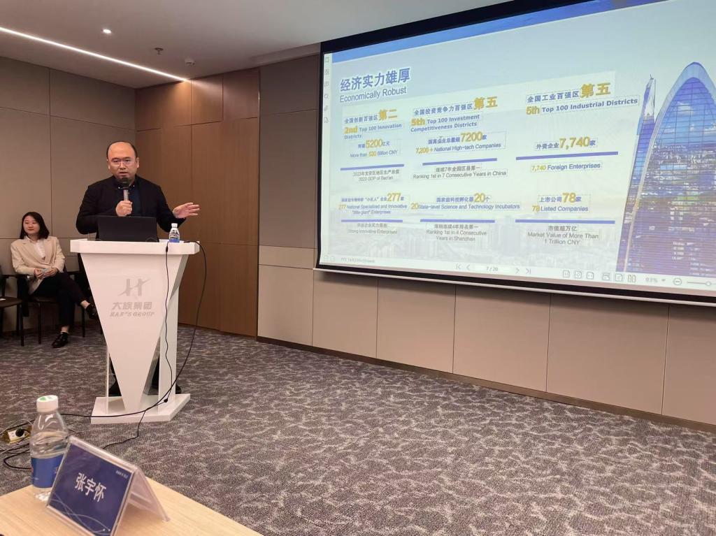 留学生为对话伙伴,专门组织了一场“一带一路”国家商务代表宝安产业对接会,宝安区领导与海龟协会会长系统全面地推介深圳宝安区的经济发展、产业优势、外贸合作政策,并跟留学生们展开了深入的对话。