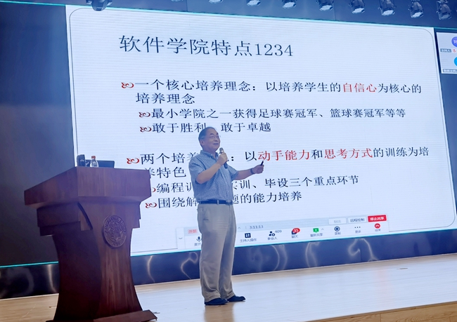 院长张玉志教授给同学们带来了一场“软件工程专业认知”专题讲座。他从身边的事例出发,向同学们讲述软件学科的独特“视角”——软件工程不能和“码农”画上等号,表示它不仅是一种分析视角,更是一种思维和习惯。张玉志还介绍了奈飞工厂