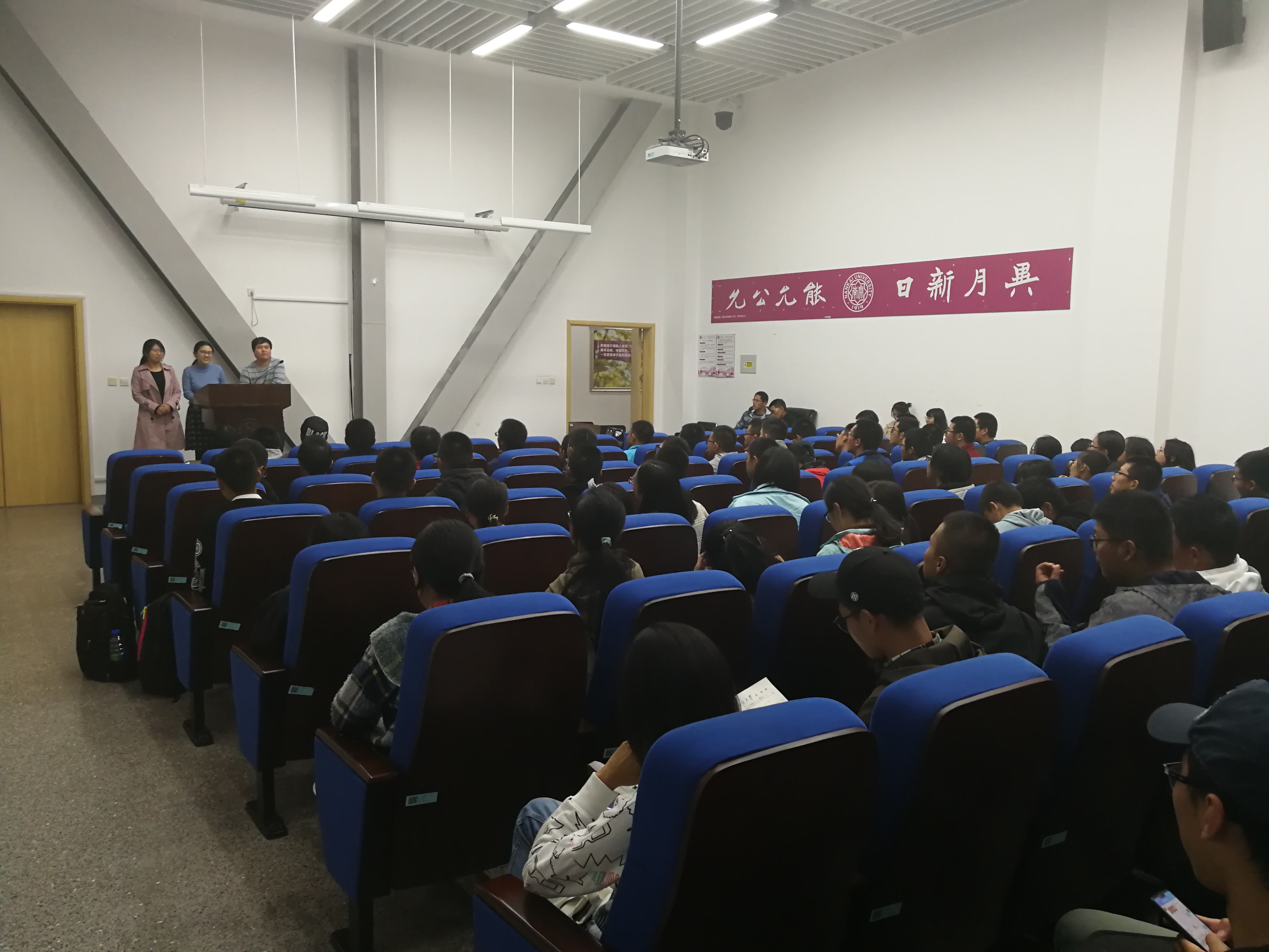 学风建设季工作。学院教学副院长谢茂强,专业教师孙永谦、沈舒尹、朱静雯,辅导员陈镜宇及全体2018级本科生参加活动。