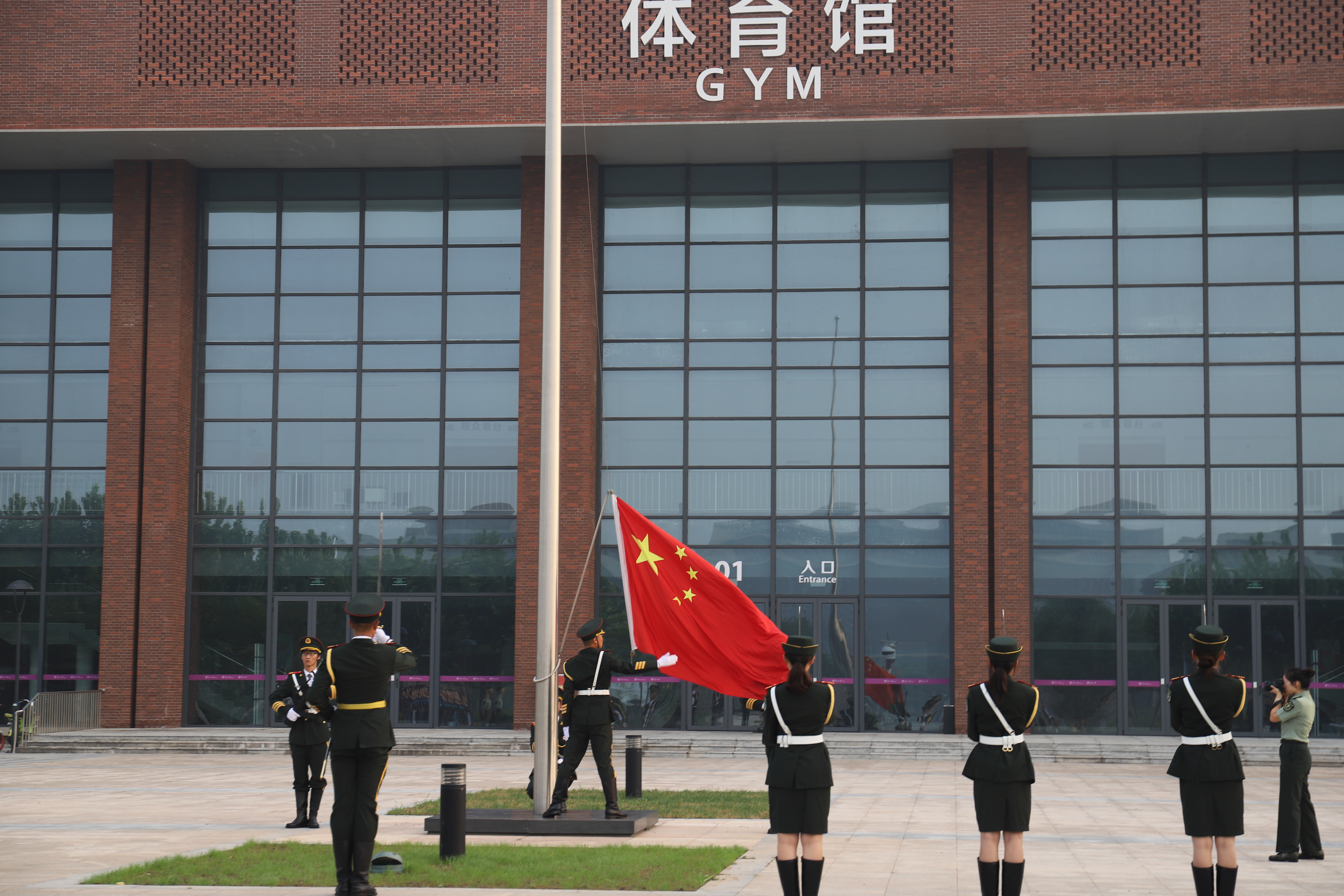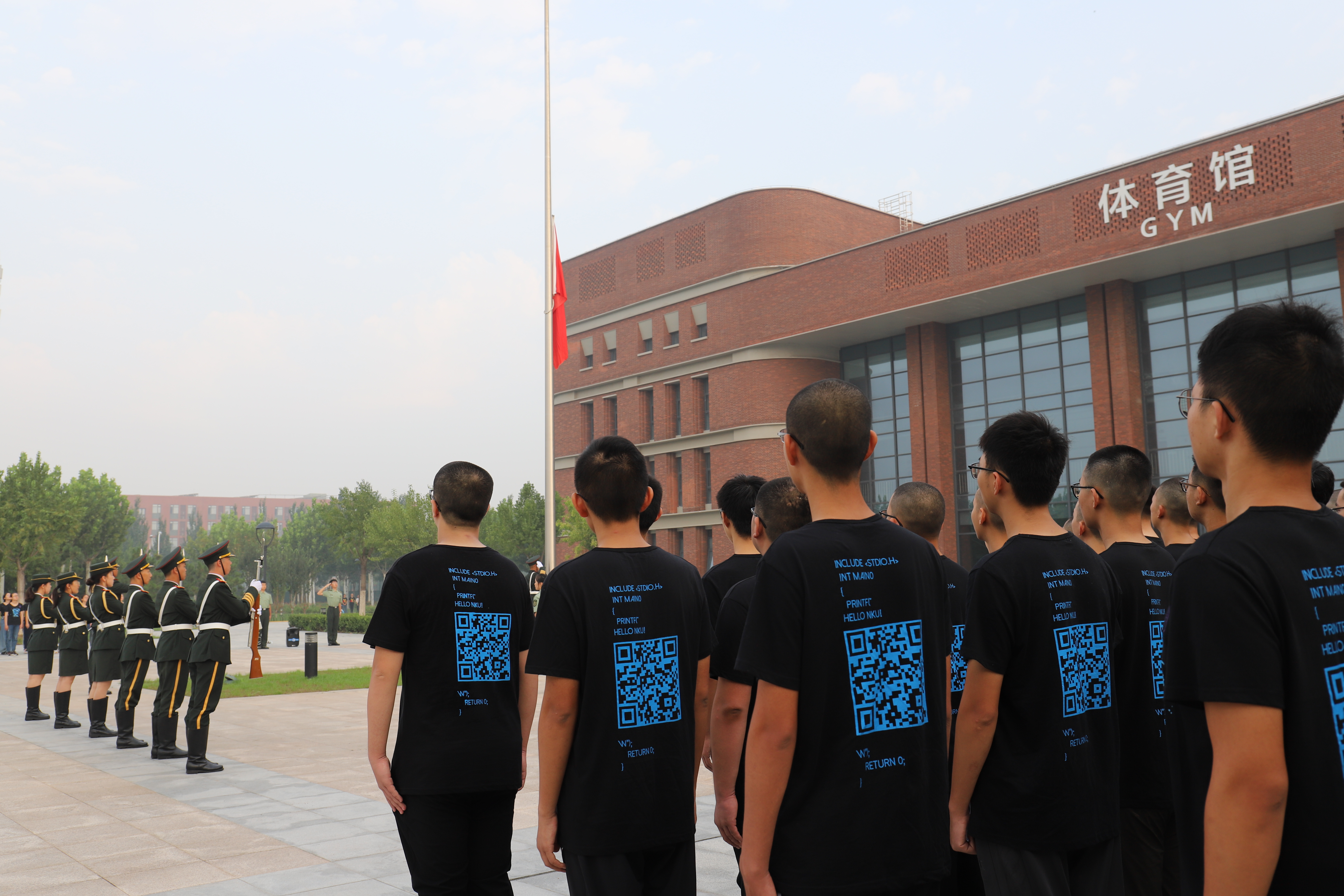 辅导员陈镜宇老师已经整齐地集合在津南校区体育馆前的五星红旗前,由奈飞工厂